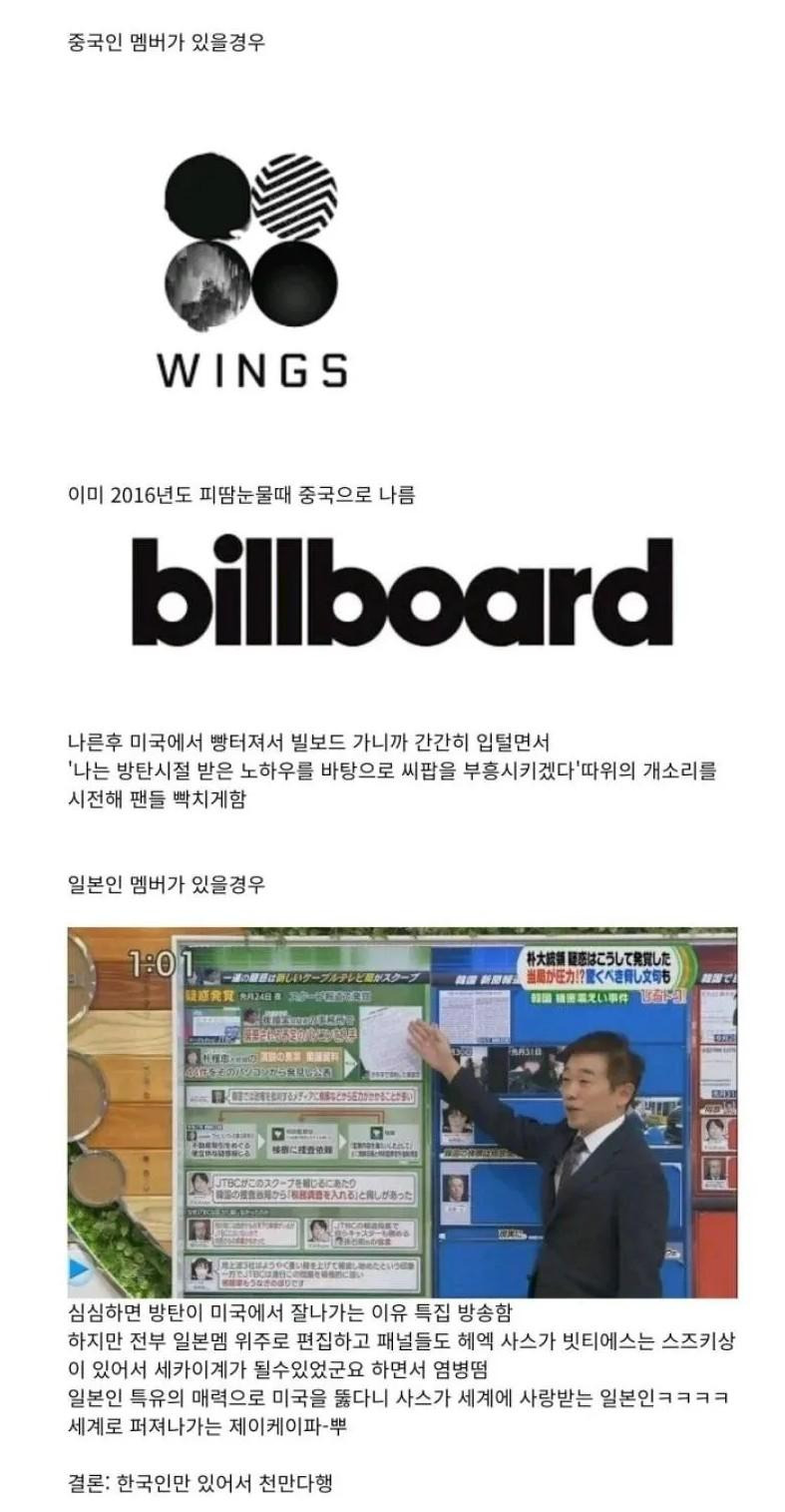 BTS가 한국인만 있어서 다행이라는 글