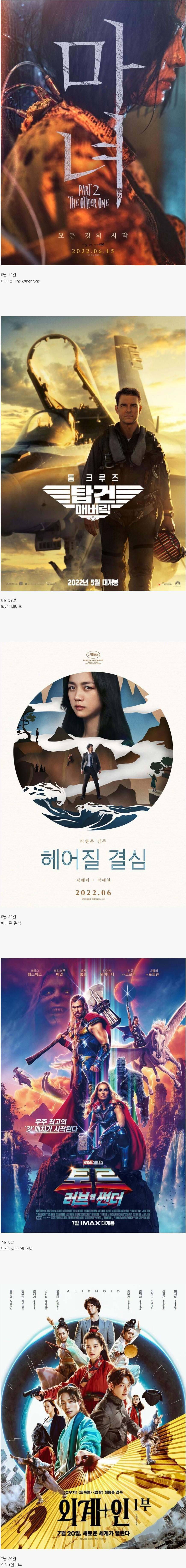 올해 여름 주요 영화들 개봉일정