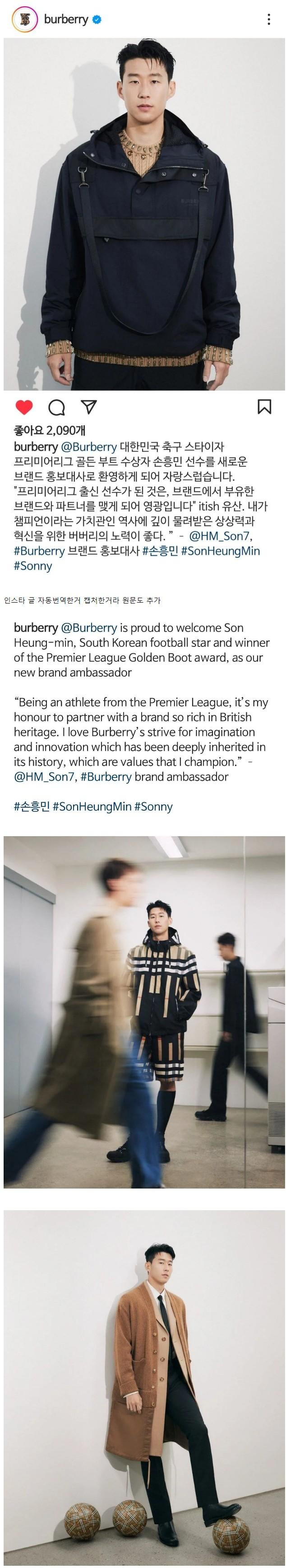 버버리 새로운 글로벌 앰버서더 손흥민
