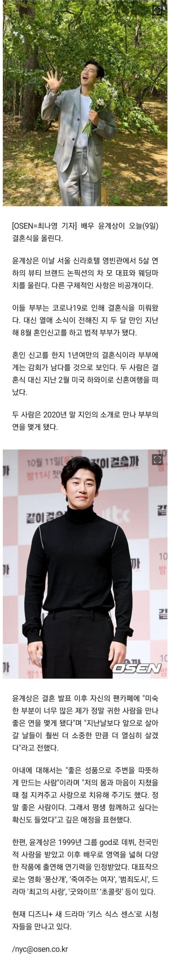 '장첸' 윤계상 5살 연하 CEO와 결혼