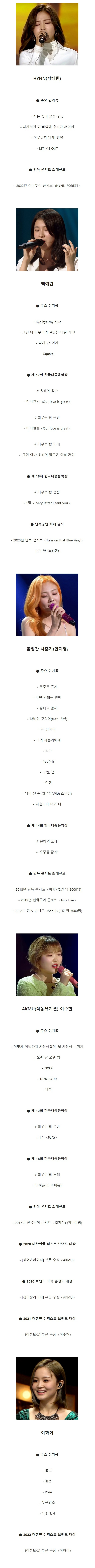 최근 각광받고 있는 20대 여성 싱어 5명