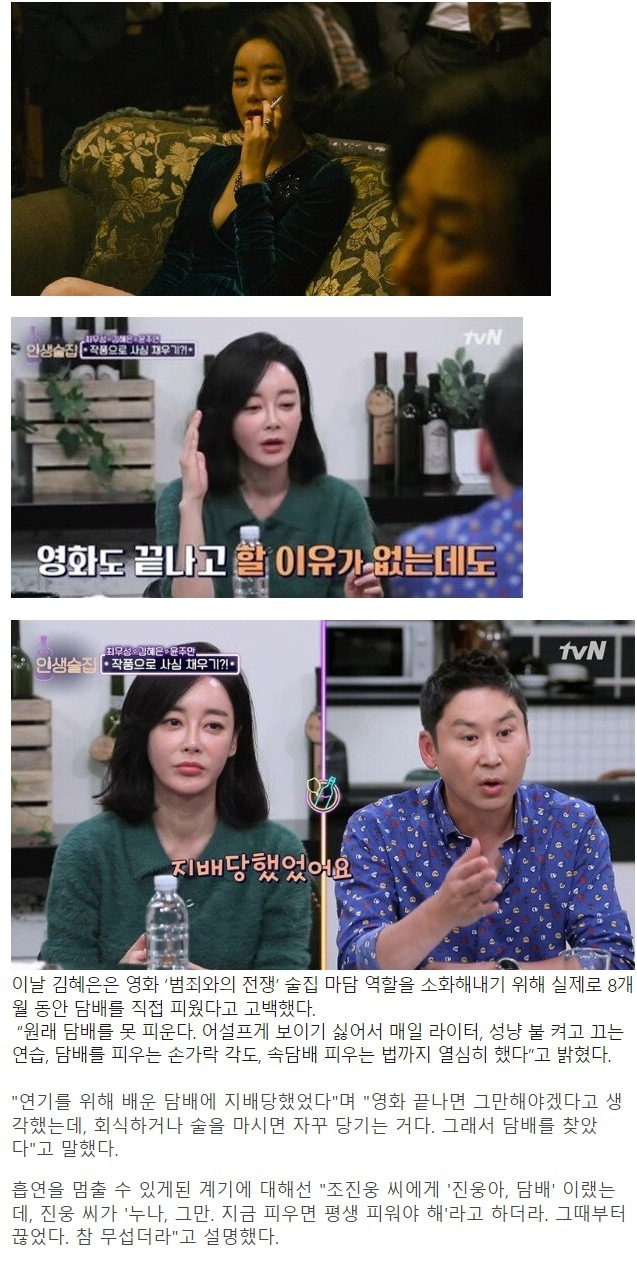 영화 찍고 담배 중독 될 뻔 했던 여배우