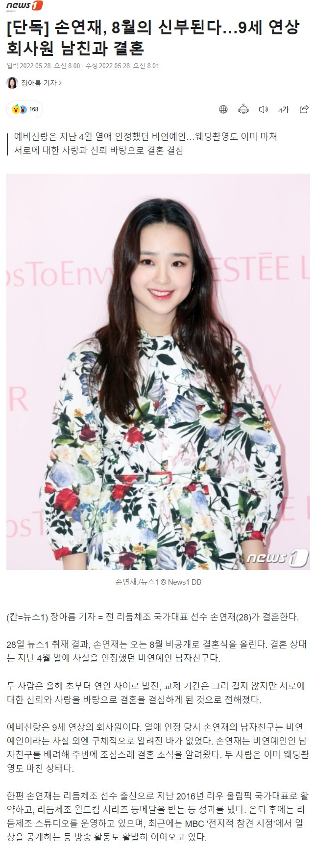 손연재 시집 간다.. 9세 연상 회사원과 결혼