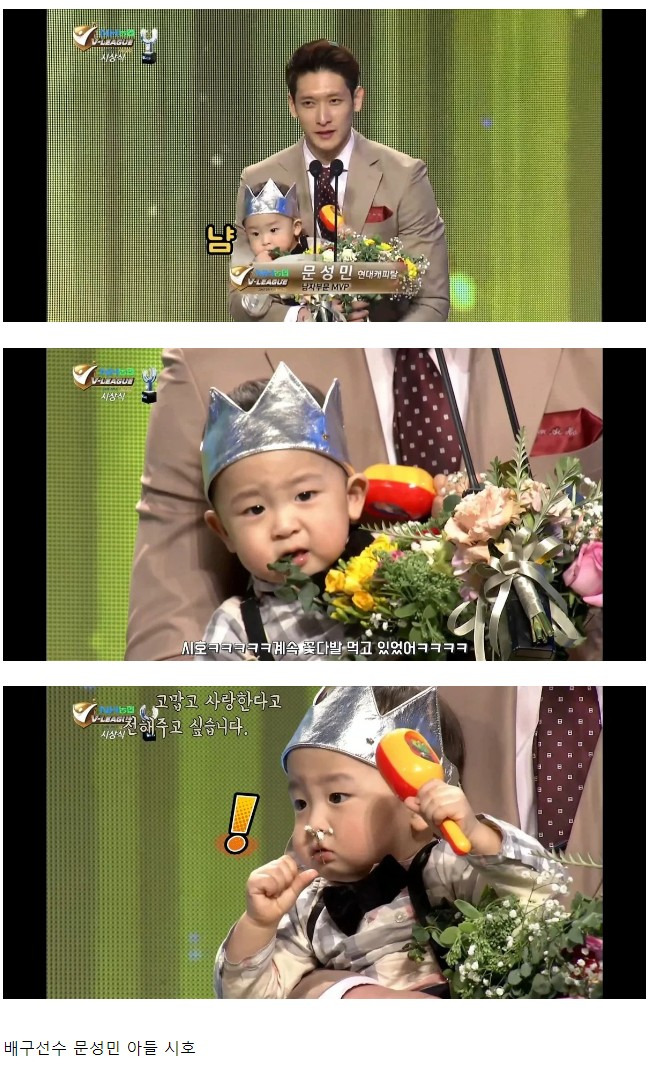 아빠 시상식에서 꽃먹는 아들