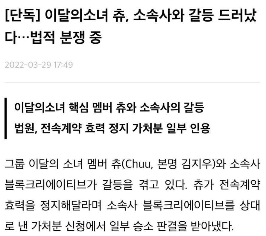 이달의 소녀 츄, 소속사와 법적 분쟁