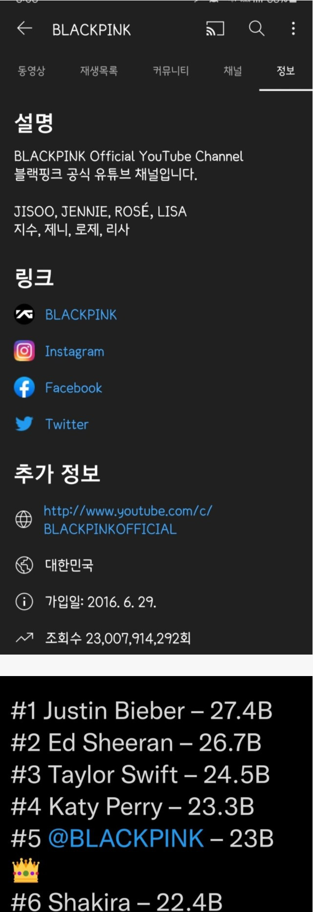 블랙핑크 유튜브 채널 230억뷰 돌파