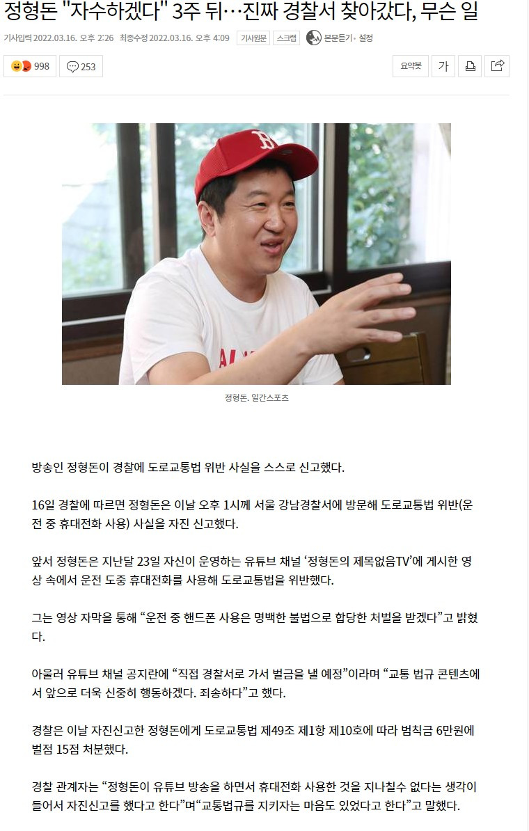 자수선언 후 진짜 경찰서 찾아간 정형돈