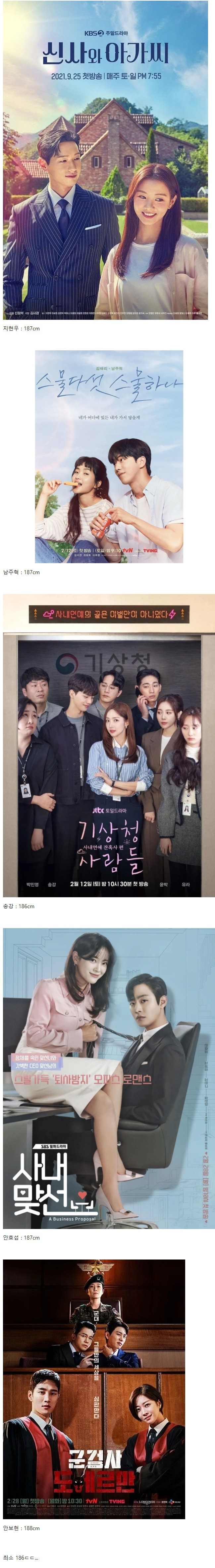 요즘 방영하는 드라마 남주들의 키