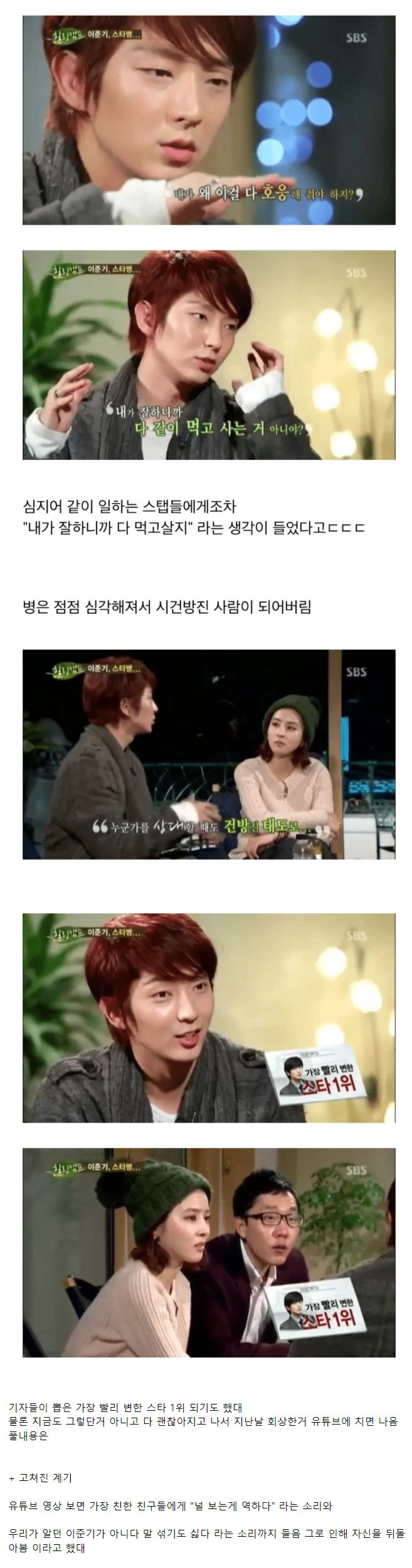 이준기가 연예인병 걸렸을 때 했다는 생각