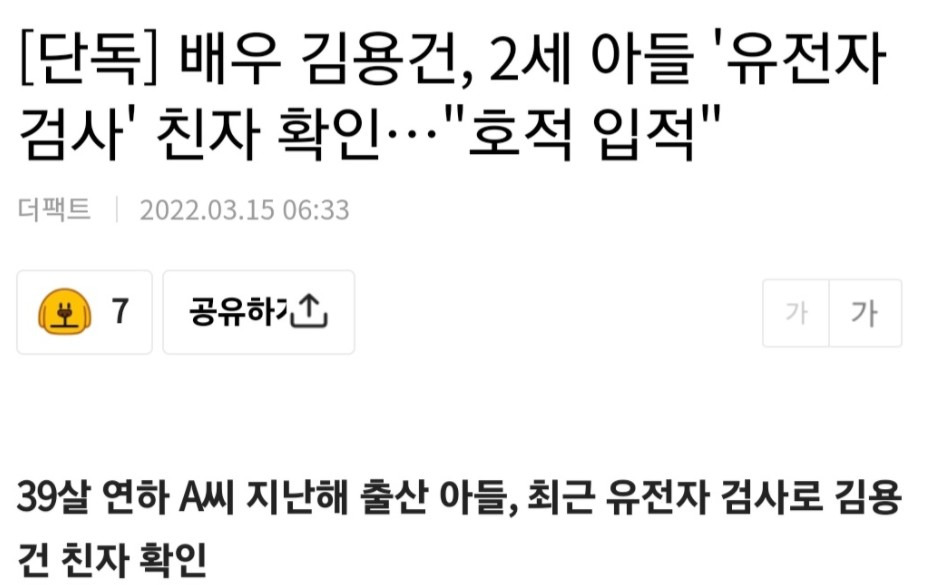 배우 김용건 , 2세 아들 '유전자 검사'