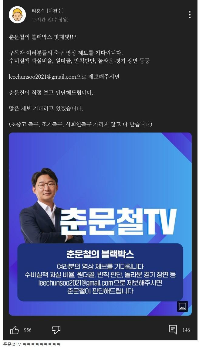 이천수 유튜브.. 새로운 컨텐츠 도전