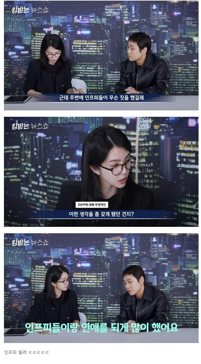 백예린님이 MBTI가 인프피(INFP)다 라고 했더니 저스디스님이 본인은 인프피를 안 좋아한다. MBTI 커뮤니티 같은 곳에서 씹프피라고 부르지 않나?