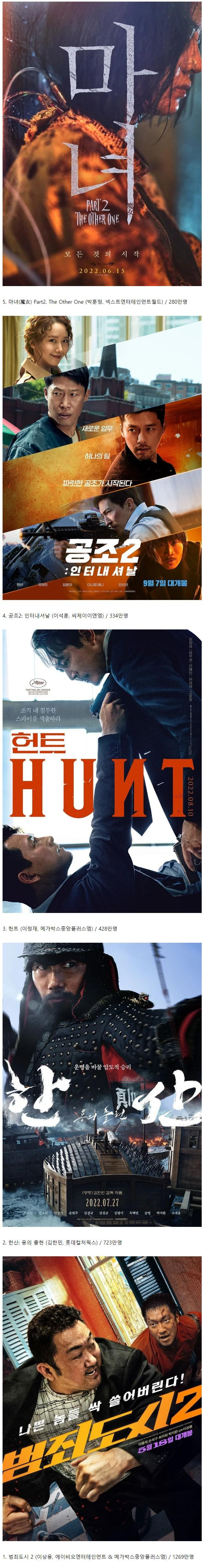 현재까지 올해 한국 영화 흥행 TOP 5