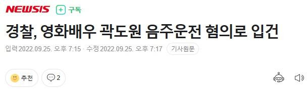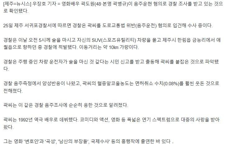 곽도원 음주운전 혐의 입건