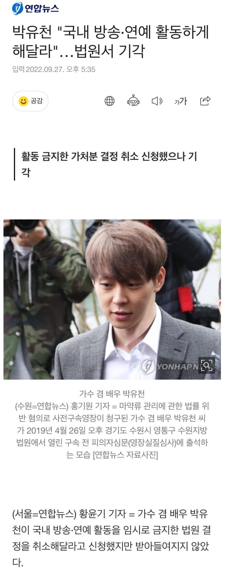 박유천 "국내 방송·연예 활동하게 해달라"