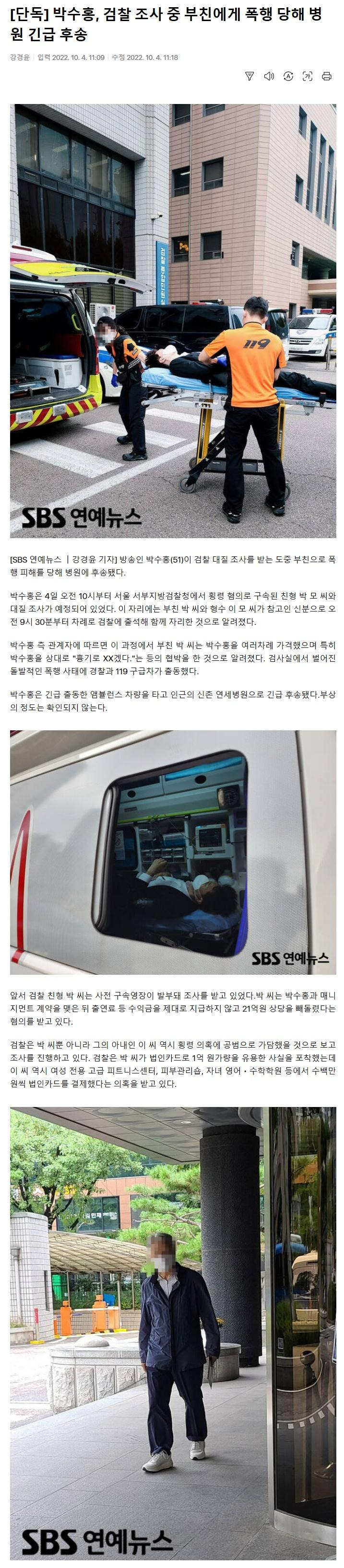 박수홍, 검찰 조사 중 부친에게 폭행 당함