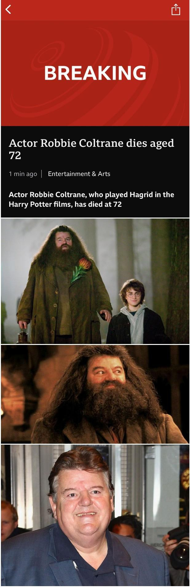 해그리드를 연기한 배우 로비 콜트레인 별세