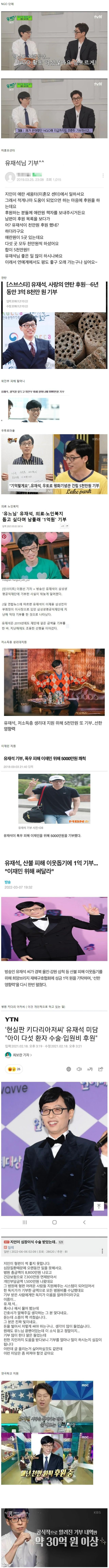 다양한 곳에 꾸준히 기부하고 있는 유재석