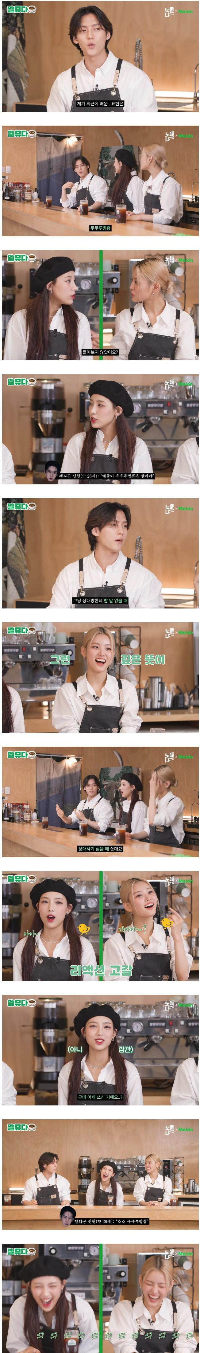 선배들이 막내 그룹에게 신조어 알려주기