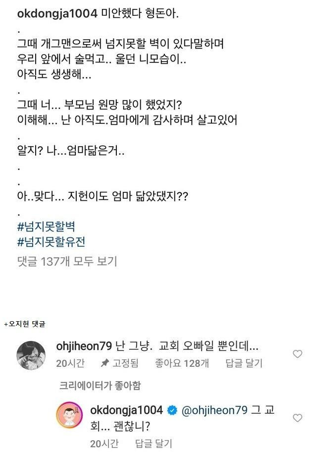 옥동자 인스타 "미안했다 형돈아"