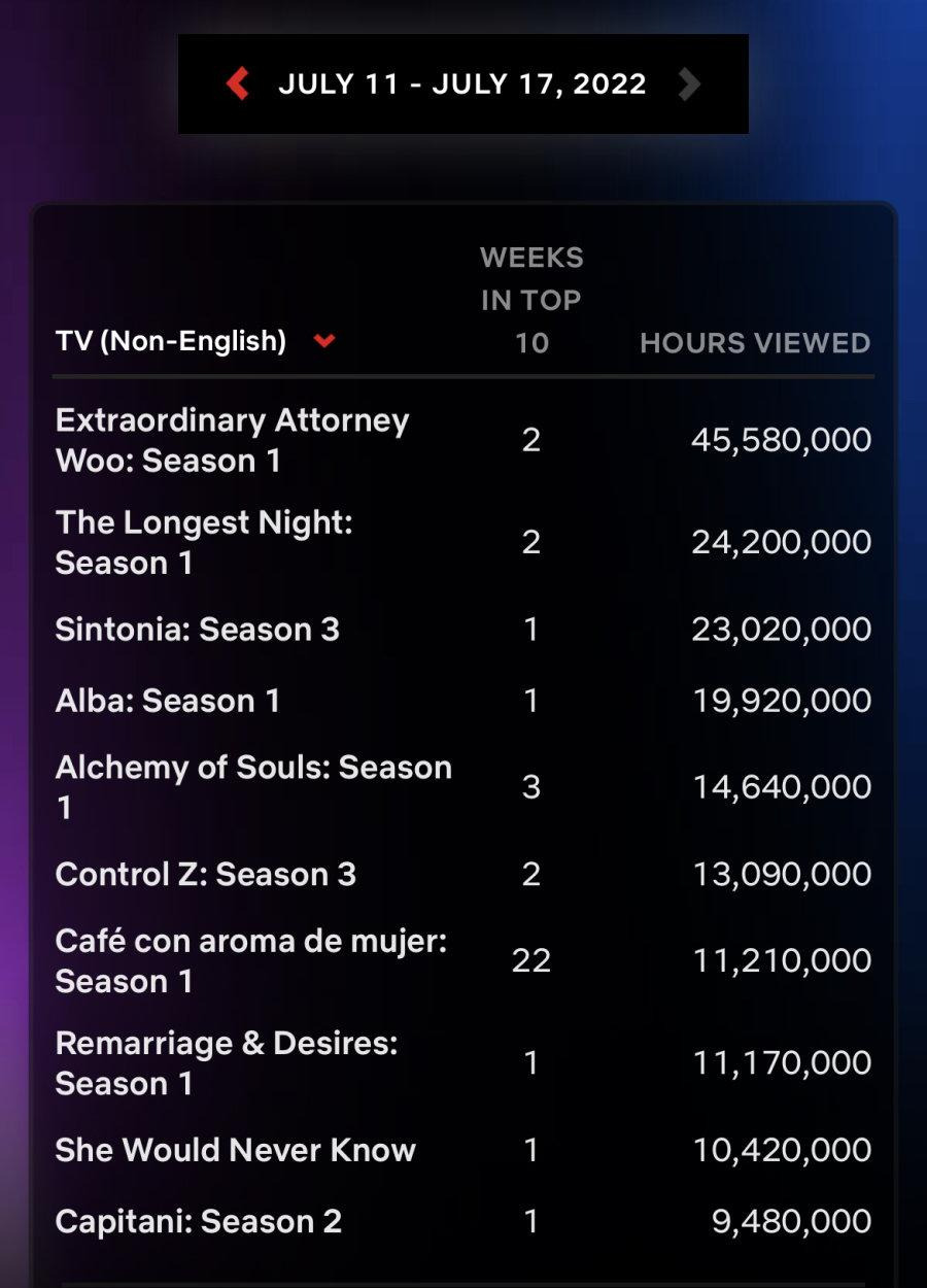 '우영우' 넷플릭스 글로벌 순위 근황