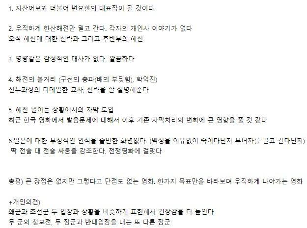 이동진 평론가의 영화 '한산' 리뷰 요약
