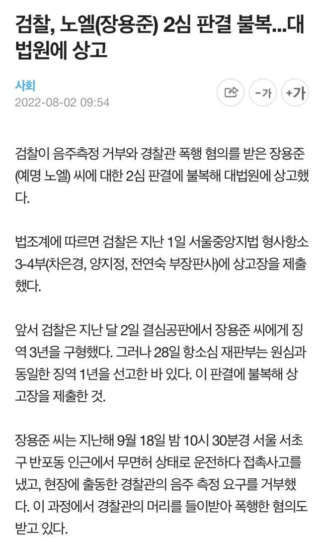 노엘 2심 판결 불복