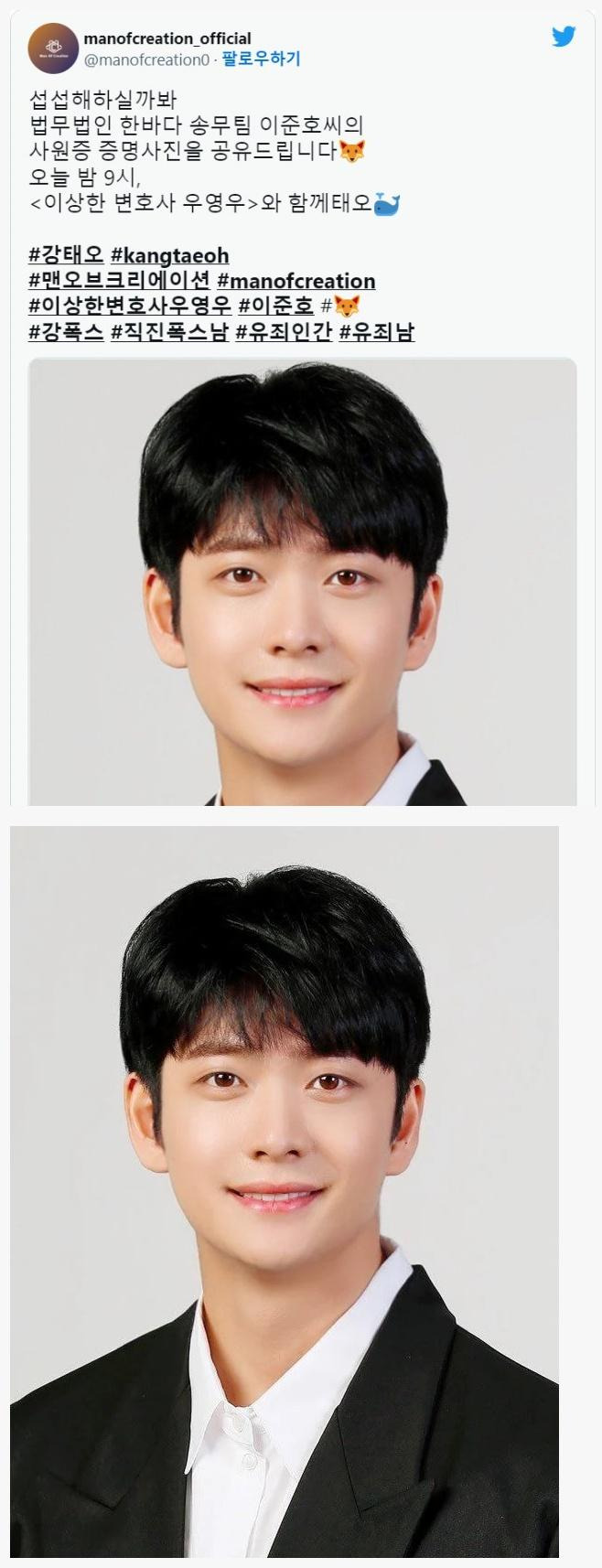 강태오 소속사에서 푼 법무법인 한바다 송무팀 사원증 이준호 증명사진