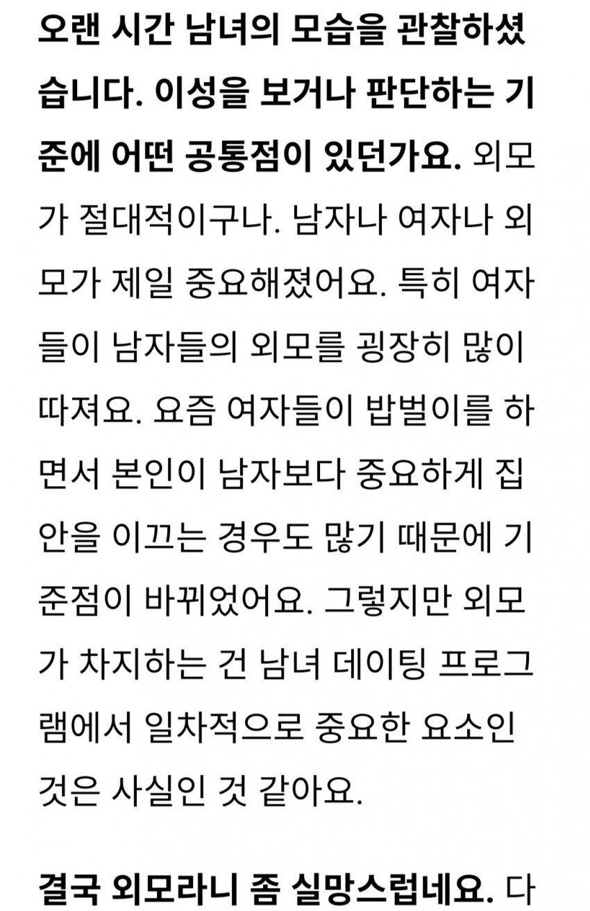나는 솔로PD가 느낀 요즘 남녀 연애 특징