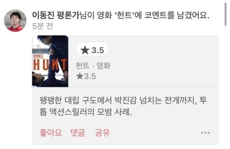 이동진 평론가 헌트 별점