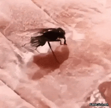 냉동고기에 주둥이 얼어붙은 파리 쉑