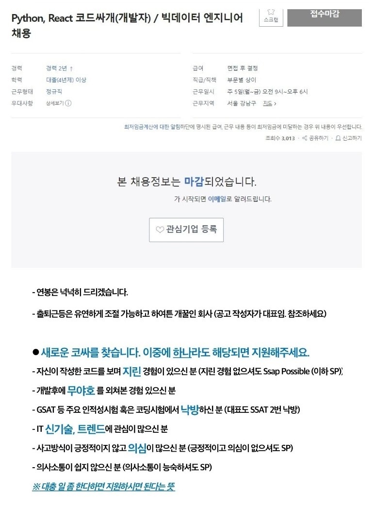 코드싸개(개발자) 채용 공고