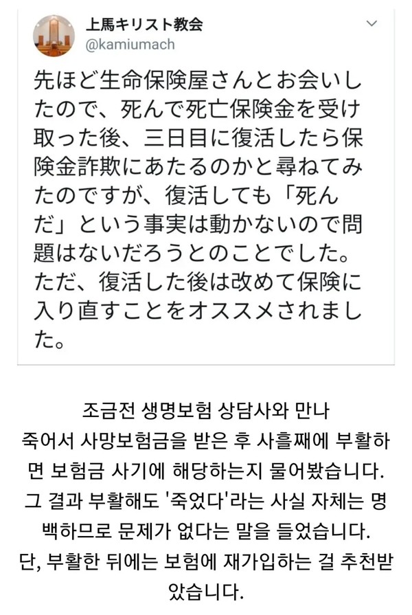 죽어서 사망 보험금 수령 뒤 부활하면..