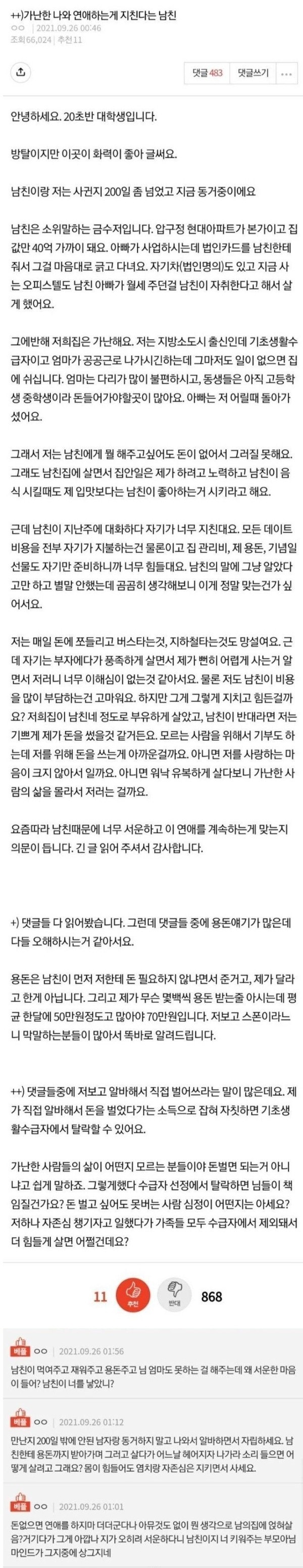 가난한 나와 연애 하는 게 지친다는 남친