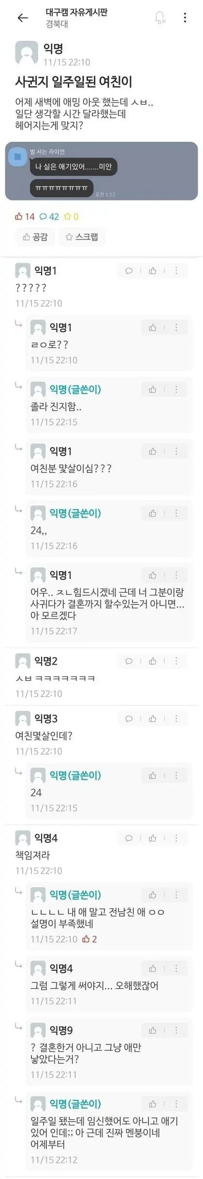 사귄지 일주일 된 여친의 고백