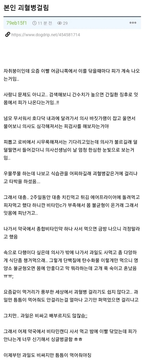 한 자취생이 괴혈병 걸린 썰