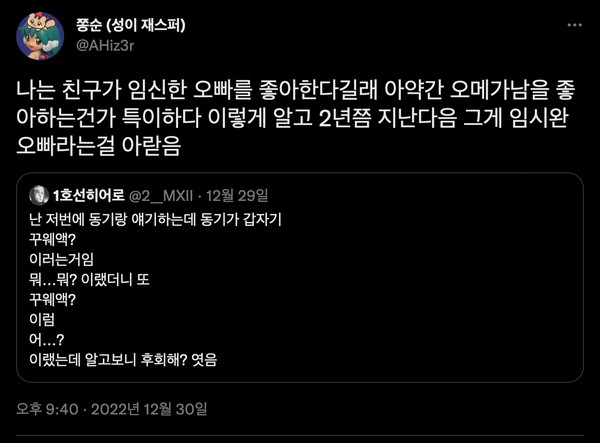 친구가 임신한 오빠를 좋아한다길래...