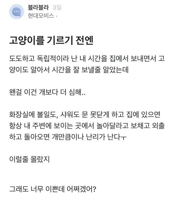 고양이는 알아서 시간 잘 보낼 줄 알았는데