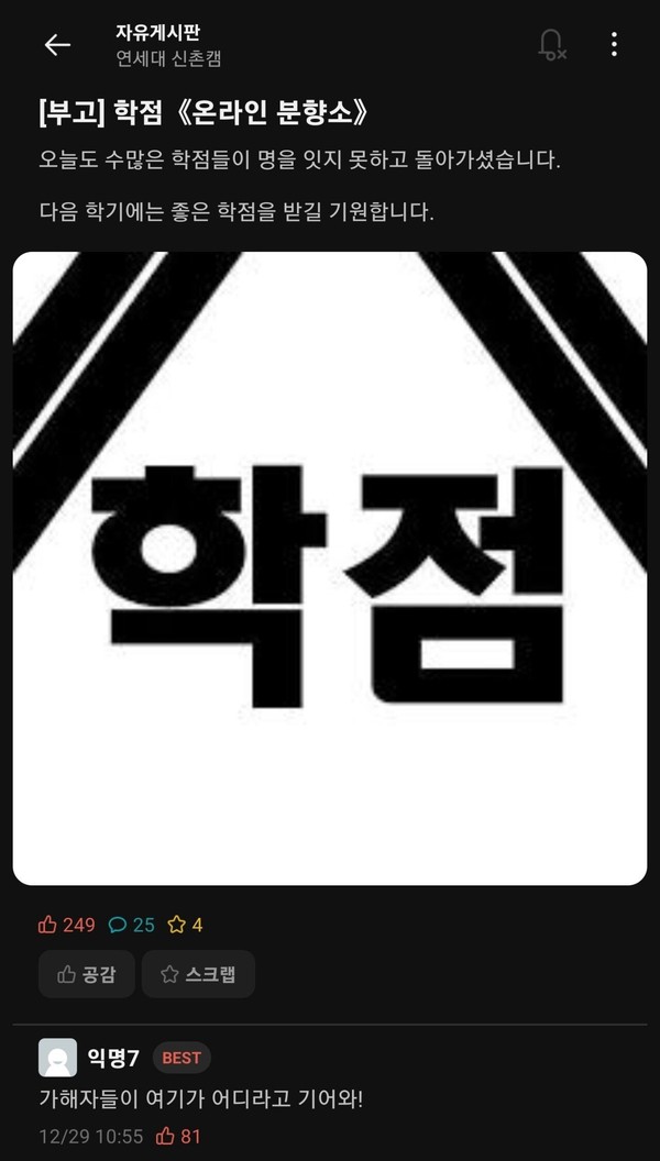 난리 난 연세대 온라인 분향소