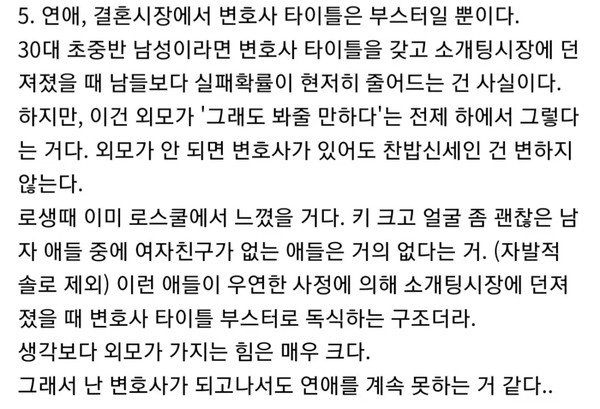 5. 결혼시장 이건 연애시장 이건 외모 중요하다