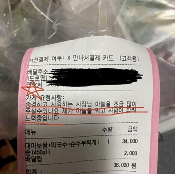 매우 공손한 가게 요청사항
