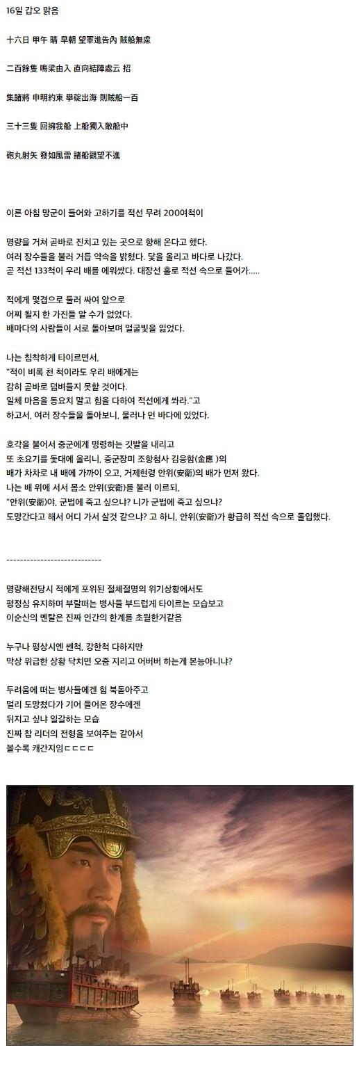 이순신 장군 난중일기 개쩌는 부분 > 피클포털