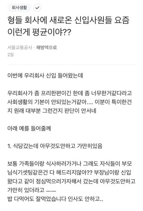 회사에 새로 온 신입 사원들 이게 평균이야?