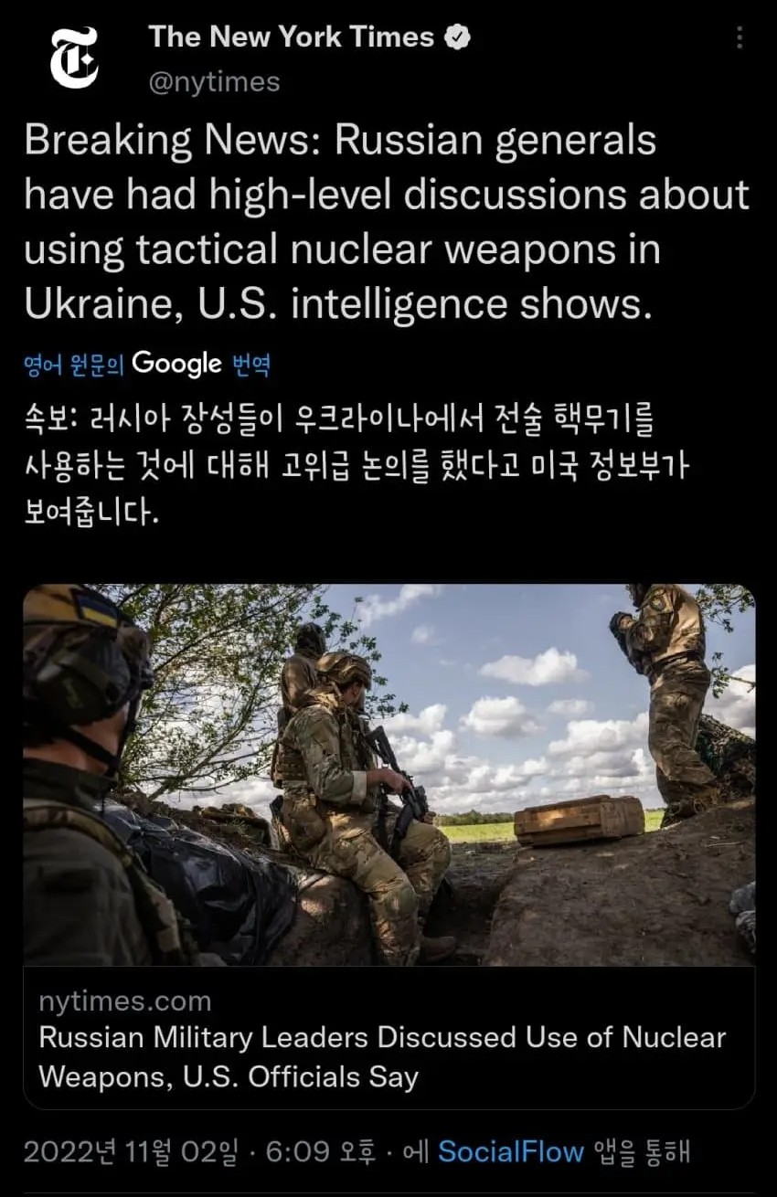 러시아 장성들 핵무기 사용 논의 중..
