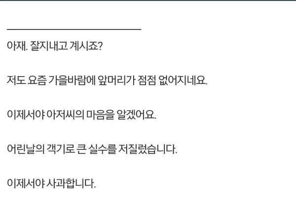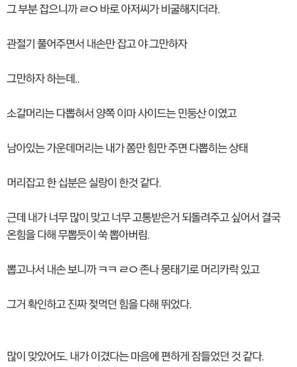 2년 전 탈모 아재랑 싸운 썰 본문 0 피클포털 목록 EVENT) 지금 로그인 후 광고 제거 혜택을 받으세요! TIP) 초승달 아이콘을 누르고 어두운 화면으로 전환 해보세요 TIP) 본문 하단 무지개 로켓을 누르고 시간 여행을 떠나보세요 TIP) 빈 공간을 두 번 누르면 맨 아래로 바로 갈 수 있어요 TIP) 편지 아이콘이 무지개 빛으로 빛난다면 쪽지가 온거에요 TIP) 본문 하단 댓글 온/오프 버튼으로 숨기거나 펼칠 수 있습니다 솔직히 중국 선수들 중에 얘는 인정임 22.12.26 11396 한국어가 듣기 불편한 외국인 22.12.25 24464 김정은 코스플레이어.. 이거 뭐냐..? 22.12.25 12592 2년 전 탈모 아재랑 싸운 썰 22.12.25 10997 마음이 편안해지는 지붕 위 눈 제거 22.12.25 10545 대학생들이 들고 다니는 전공책 진짜 의미 22.12.25 12147 일본인들이 크리스마스 때마다 먹는 음식 22.12.25 10442 강원도 제설차량으로 유명한 벤츠 유니목 22.12.25 11443 처음 이전 4841페이지 4842페이지 4843페이지 4844페이지 4845페이지 열린4846페이지 4847페이지 4848페이지 다음 맨끝 게시물 검색 검색대상 제목 내용 제목+내용 댓글작성자 검색어 필수 삭제요청
