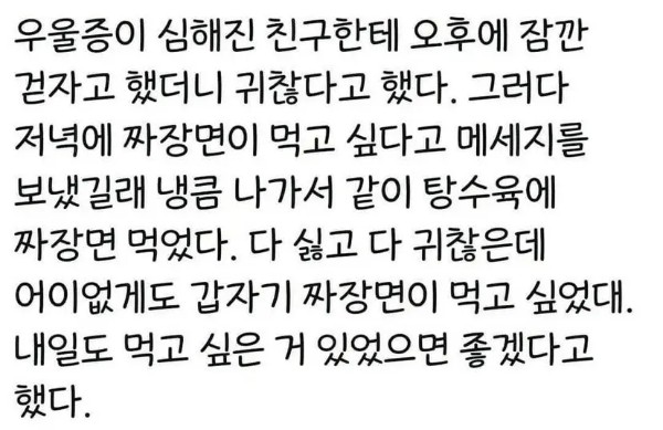 우울증 심해진 친구에게 잠깐 걷자고 했다