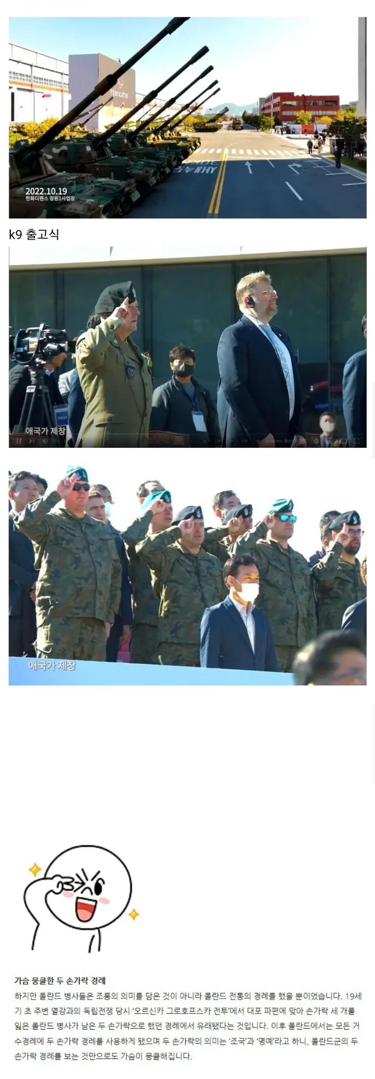 폴란드군이 K9 출고식에서 한 경례