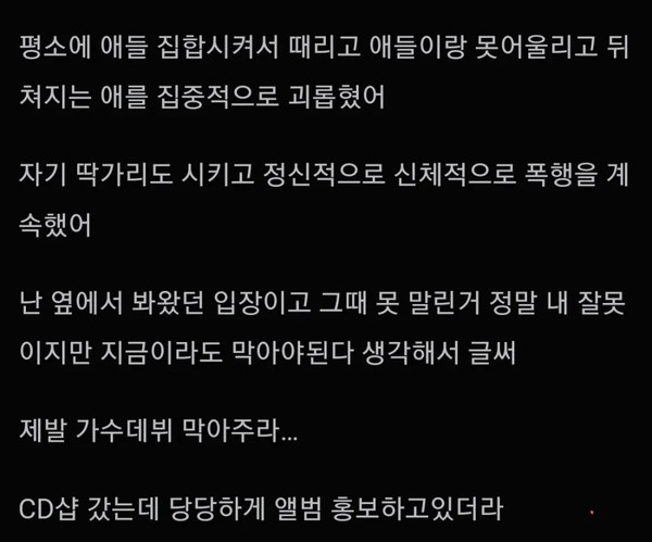 학폭 가수 데뷔 좀 막아줘..