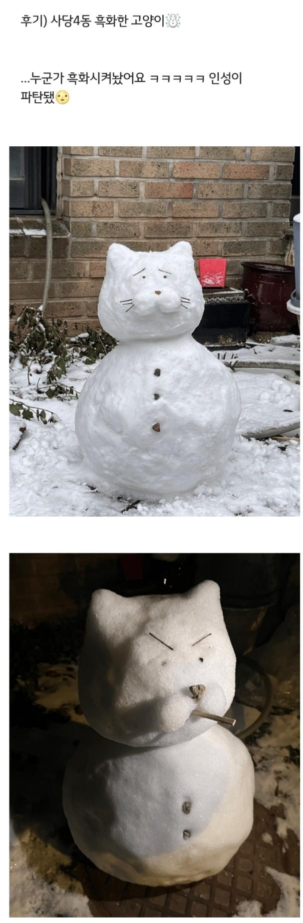고양이 눈사람 만들어 놨더니 흑화함