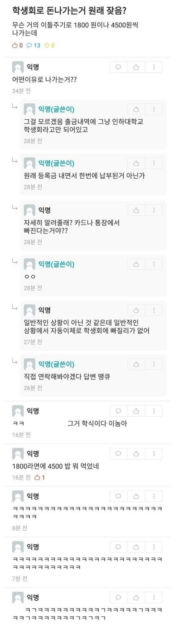 학생 몰래 계좌에서 돈을 빼가는 학생회